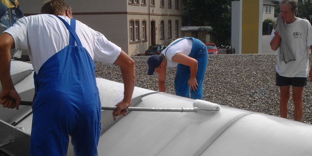 Manchmal lässt der mangelnde UV-Schutz eines bestehenden Lichtbandes oder ein zu starker Hagelschaden keine Beschichtung zu. Aber auch dann vermeiden wir einen Komplettaustausch und tauschen lediglich die Stegplatten.